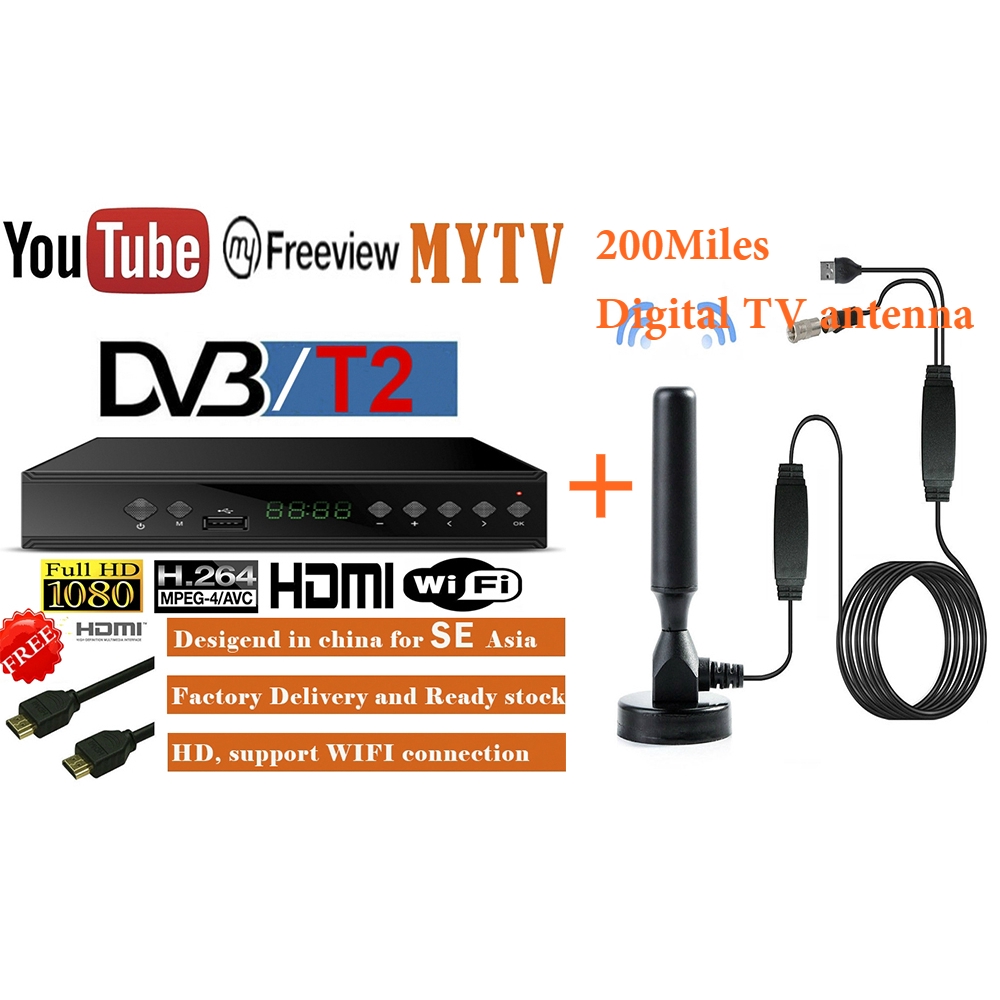 Free Hdmi Cable Av Cable 200miles Tv Antenna Dvb T2 Terrestrial Myfreeview Hd Tv Digital Fta Hdtvreceiver T2 Tv Box Shopee Malaysia
